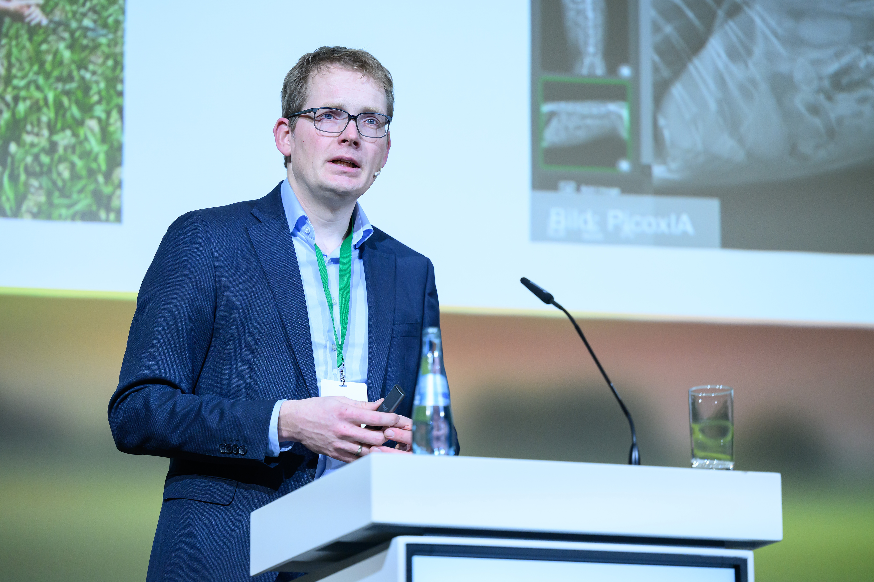 Dass menschliches Wissen unverzichtbar sei, um KI tatsächlich zum „Produktivitätsturbo“ zu machen, bekräftige auch Dr. Henning Müller, Vorsitzender des Agrotech Valley Forum e. V. und Projektmanager des KI-Reallabors Agrar bei der Universität Osnabrück, in seiner Keynote. Landwirtinnen und Landwirte brauchen auch in Zukunft eine fundierte Ausbildung und müssen wichtige Aspekte selbst einschätzen können, führte Dr. Müller aus. Als Anwender müssten sie sich aktiv mit dem Themenfeld KI auseinandersetzen, unterstrich der Wissenschaftler, der gemeinsam mit seiner Frau einen Betrieb mit Ackerbau und Tierhaltung bewirtschaftet.