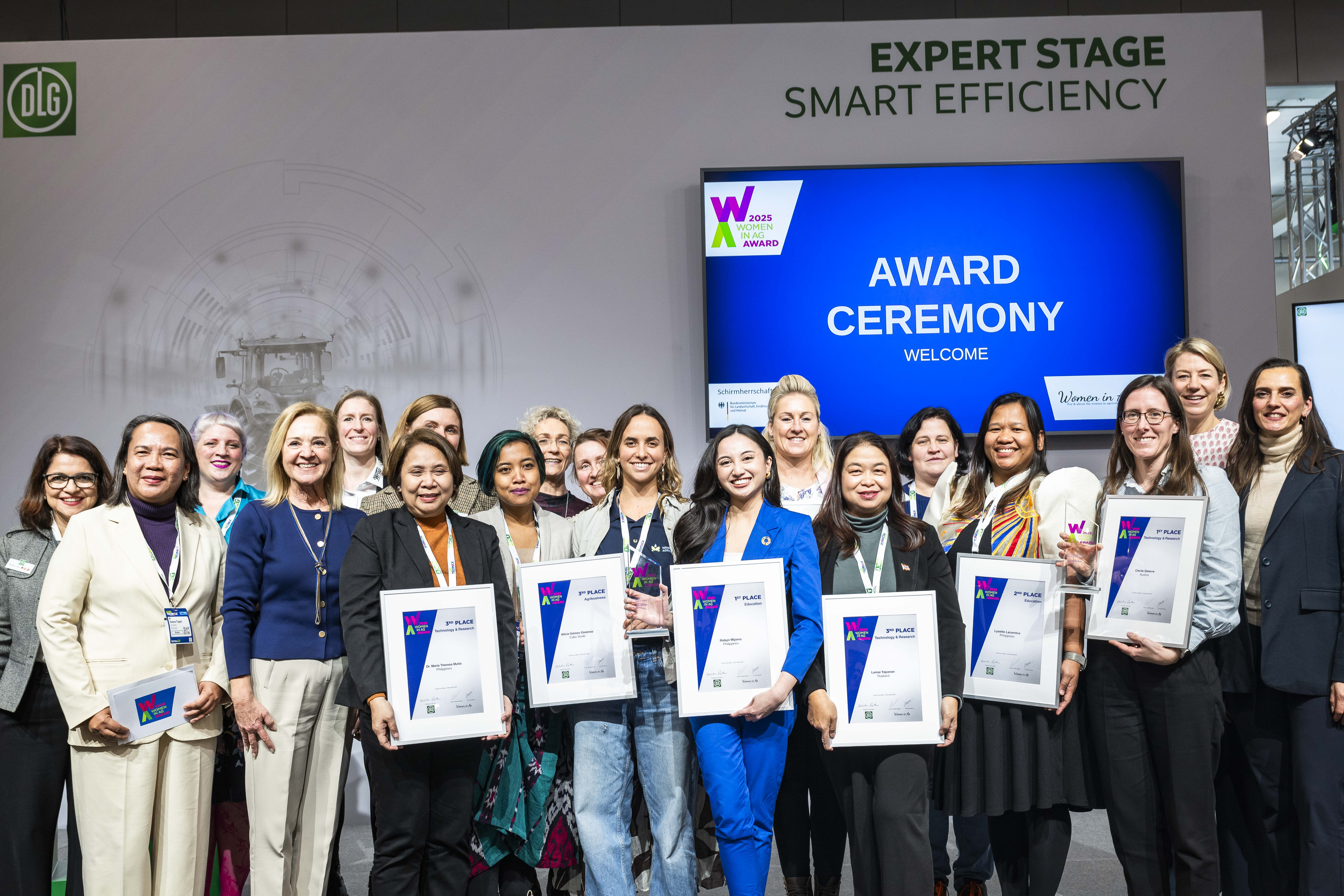 „Der Women in Ag Award würdigt die Leistungen von Frauen in der Landwirtschaft weltweit“, sagte DLG-CEO Freya von Czettritz anlässlich der Verleihung am Mittwoch auf der DLG-Expert Stage Smart Efficiency. Der Preis wurde bereits zum vierten Mal von der DLG und dem Women in Ag Magazine vergeben. 150 Frauen aus 64 Ländern hatten sich beworben; jeweils drei Preisträgerinnen wurden in den vier Kategorien „Landwirtschaft“, „Agribusiness“, „Bildung“ sowie „Technik und Forschung“ ausgezeichnet. „Wir verleihen den Preis in vier Kategorien, um der Vielfalt der Agrarbranche zu reflektieren: Nicht alle Frauen im Agrarbereich sind auch praktische Landwirtinnen“, erklärte Kim Schoukens, Gründerin und Chefredakteurin des Magazins. Bundeslandwirtschaftsminister Alois Rainer, Schirmherr des Netzwerks Female Agri Fellows der DLG und des Women in Ag Award, betonte in seiner Videobotschaft die Notwendigkeit, Chancengleichheit weltweit zu fördern: Der Award und das Netzwerk Female Agri Fellows trügen dazu bei, „junge Frauen dafür zu motivieren, sich in der Landwirtschaft zu engagieren“.