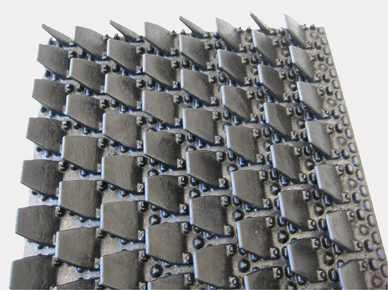Schwarze tief profilierte Gummimatte; ca. 65 mm dick; Oberfläche mit Hammerschlagprofilierung